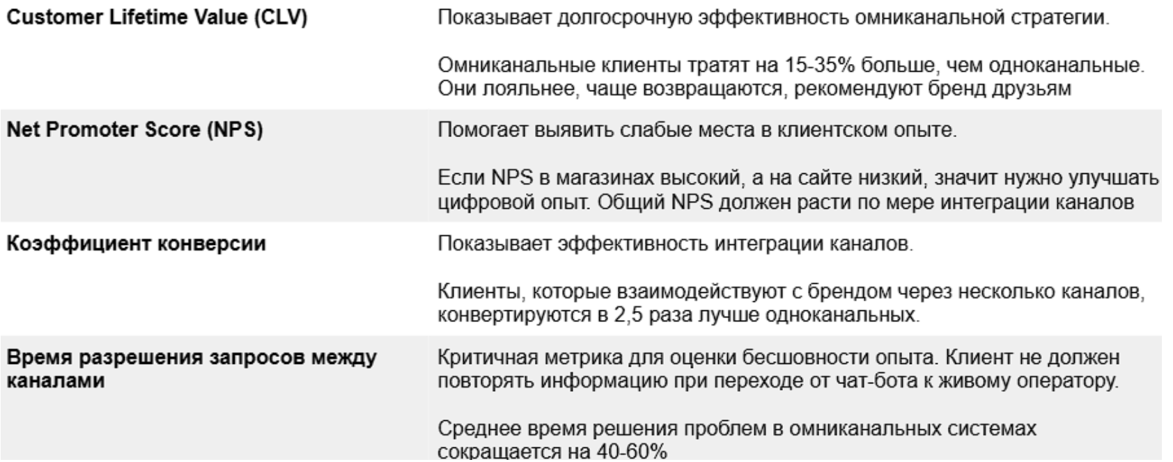 Омниканальные KPI должны отражать общий клиентский опыт: удовлетворенность, лояльность, пожизненная ценность клиента. Система мотивации сотрудников должна поощрять кроссканальное сотрудничество, а не конкуренцию между каналами.